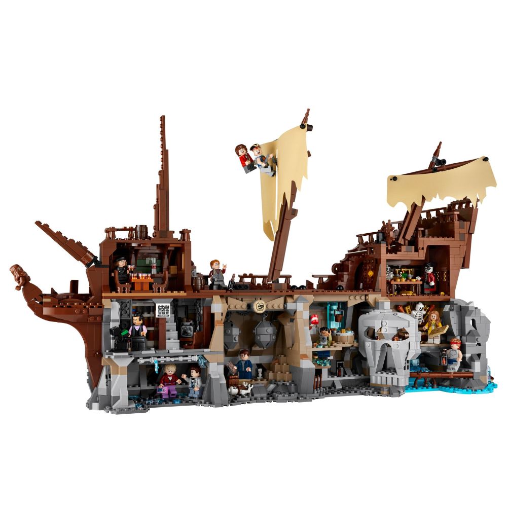 - Szczegółowe elementy odwzorowujące sceny z filmu, w tym tajemnicze jaskinie i piracki statek