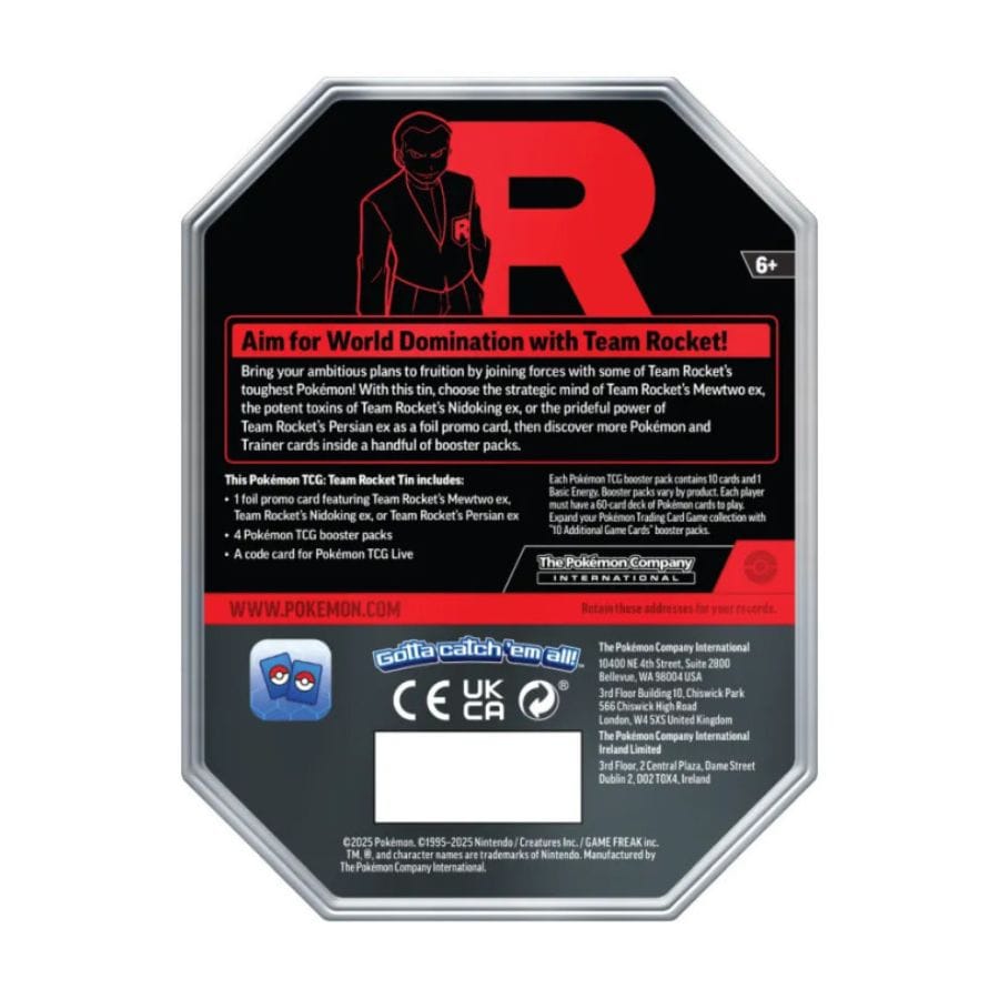 Metalowa puszka z motywem Team Rocket nie tylko chroni karty, ale również stanowi efektowny element kolekcji – idealna do przechowywania kart lub akcesoriów Pokémon TCG.